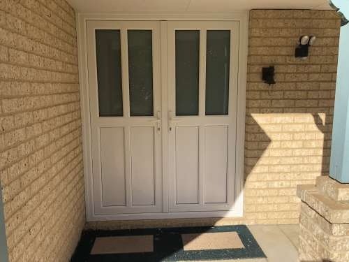 After having windows installed, our customer decided that the old timber doors were next to go. Here, we have installed a French Door arrangement with uPVC panels in the lower section. The glass panels consist of Laminated glass for privacy and added security.